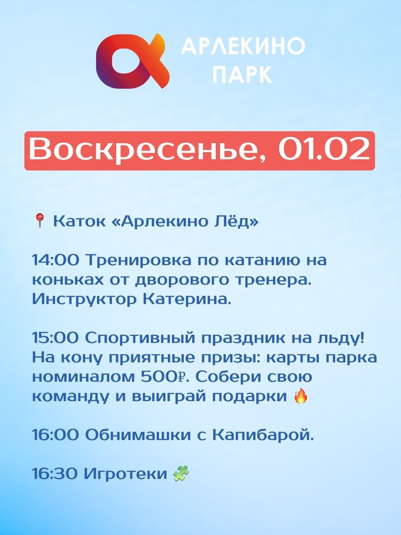 15:00 Спортивный праздник на льду! На кону приятные призы: карты парка номиналом 500₽. Собери свою команду и выиграй подарки 🔥